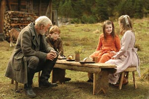 翌日から、ハイジのアルプスでの生活が始まった。昼間は、山羊飼いのペーター(サミュエル・フレンド)と一緒に放牧場へ出かけ、夜は、祖父のチーズ作りを手伝う日々。大自然と触れ合い、そこからさまざまなことを学べる生活が、好奇心旺盛なハイジには楽しくて仕方がない。そして、そんなハイジとの暮らしは、いつしかアルムおんじにとっても、かけがえのないものになっていった。ハイジのために椅子を手作りした彼は、「ありがとう」と言って抱きついてきたハイジを、力いっぱい抱きしめる。
