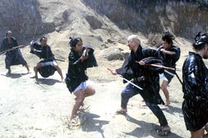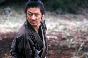 たけし座頭市の宿敵となる浪人・服部源之助役の浅野忠信の剣さばきは、目を見張るほどシャープで、男も惚れる怒涛のカッコよさだ。浜辺での二人の対決シーンは、この映画最大のヤマ場となっている。