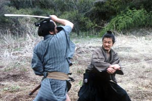 その頃、浪人・服部は飲み屋「的屋」で飲んでいた。的屋の親父(柄本明)に金を要求しにきたヤクザに剣の腕を見せつけ、用心棒となる服部。