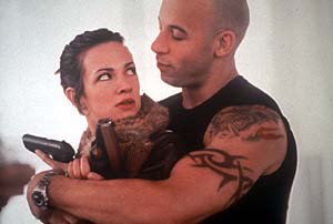 なにより、ハリウッドは待望のアクションスターのニューブリード誕生に興奮を隠せない。フェロモン全開、精悍さに溢れたタフな容貌にユーモアを滲ませる、その名はヴィン・ディーゼル。『ピッチ・ブラック』や『ワイルド・スピード』で、スターダムにのし上がた彼が肉体に磨きをかけて、瞬きの猶予を与えないアクションにチャレンジしてみせる。地上200メートルの橋からのスポーツカー・ダイブ、空前絶後のバイク・スタント、スノーボードをつけての空中ダイビング、高速潜水艦への飛び移り、雪崩のなかでのスノーボーディングまで、危険度トリプル級、ジャッキー・チェンも真っ青のスタントを披露する。まさに惚れ惚れするようなヒーローぶりなのだ。