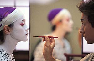 主演は本作品が映画初主演となる九代目中村福助。映画の中でも実生活とシンクロする当代の女形を演じ、十八番「京鹿子娘道成寺」を京都南座の舞台や、映画初ロケを敢行した和歌山県の霊場高野山で披露している。特に映画のラストで高野山壇上伽藍・根本大塔正面を背景に舞う姿は華麗そのものである。彼に恋焦がれ、運命に翻弄される双子のヒロインに牧瀬里穂。『ターン』(平山秀幸監督)で2002年毎日映画コンクール主演女優賞を受賞し、本格的な演技派女優として飛躍を期待されているが、さらに本作では確かな演技はもちろん、洋舞、日舞両方こなす多彩な面も披露している。そして須賀貴匡が歌舞伎の新人女形、風間トオルが大衆演劇のニュー女形、宝塚出身の真矢みきがコン・テンポラリー・ダンスの踊り手、と個性豊かな演技陣による全篇を彩る多彩な踊りの競演はまさに圧巻そのものだ。