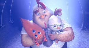 そんな彼にも、仲の良い友だち3人組がいた。フィッシュは、陸地で生活するため、潜水ヘルメットをいつもかぶっている。好奇心旺盛なあまり落ち着きがなく、みんなからケムたがられていた。ラントは、体は大きいけど、ものすごく臆病で、自分に自信がもてずにいる。そしてアビーは、チキン・リトルの良き理解者で、占い雑誌が大好きな女の子だ。彼女のルックスは個性的なあまり、(それを「醜い」と言うヤツもいる)皆から敬遠されていた。クラスメートからは“変わり者”扱いの彼らだったが、チキン・リトルにとってはかけがえのない心の支えだった。