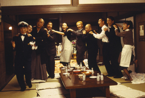 物語の舞台はお通夜だからややこしい。本当は悲しくて寂しくてたまらないのだけれど、そこに集まってくるのは親しい仲間や久しぶりに会う親戚だったりで、それはそれで不謹慎ながら楽しい一夜が繰り広げられる。しかも亡くなったのが上方落語界の重鎮といわれる師匠、一番弟子、おかみさんの3連荘だったからもう大変な騒ぎ。回を重ねる毎に寝ずの番をする故人ゆかりの人たちが、悲喜こもごもの想い出話に花を咲かせ、興が乗れば三味線片手に歌って踊る大パーティーが始まる。そんなエッチで危なっかしい爆笑エピソードの連続の中に師弟の強い愛情、仲間たちの絆が爽やかな涙を誘い、心暖まる感動を生み出している。大人のためのエンターテインメントを目指したマキノ雅彦監督のオモシロ・ダイナミズムが劇的な成果を収めたのだ。
