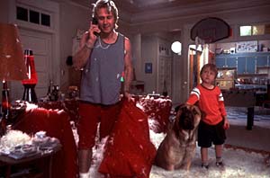 ところがそんなひとりと一匹それぞれに大事件が起こる。ジェイムズ君はママの出張に合わせてやってくるはずだったベヒーシッターが食中奉でダウン。ママのステファニーに片思いをしている、脳天気で犬嫌い(自分の配達区域の猛犬たちと日々バトルをくり広げている)な郵便配達人のゴートンに急遽預けられることに。スポットはといえば、その優秀さのあまりギャングのボスに恨みを買い、命を狙われたことから、緊急避難することになるのだが、その移送中にギャングが送り込んだ殺し屋に襲われ、危櫛一髪のところを、ゴードンが運転する郵便配達車に逃げ込んでくる。これがひとりと一匹の運命の出会いだった。