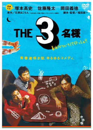 DVD オリジナル企画ながら、すでにセールスは大ヒットという快挙を成し遂げ、話題騒然の映像版『THE3 名様』。本作はお馴染み、石原まこちん原作・小学館「週刊ビッグコミックスピリッツ」で連載中のショートコメディ漫画をDVD のみで映像化。主演は現在、各マスコミからオファーが絶えない、塚本高史・佐藤隆太・岡田義徳の若手人気俳優が担当。共演作も多い3 人だけに絶妙なコンビネーションを醸し出しています。監督&脚本は人気構成作家の福田雄一(「水10!ココリコミラクル」他)。真夜中のファミレスのみで展開していくショートコメディ漫画を、見事に映像化し『THE3 名様』の世界観を披露。究極の脱力系シチュエーション・コメ