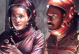 由来を知らなくっても懐かしいちょっとテープなSF的ガジェットや、映画フリークをニヤリとさせる小ネタ、ひと癖もふた癖もあるキャスティングなど、オタク心を刺激する仕掛けが随所に施されていてニヤリとさせっぱなしの本作だが、なんと(見かけによらず)製作費1億ドルの超大作!確かに、リトル・アメリカの巨大セットなどを眺めているとそれもむべなるかな、なのではあるが、それにしてもマニアックな趣味の世界でこれほどの大金を使ってしまう大胆さ、気っぷの良さ(?)に拍手である。しかしながら今の世はせちがらい。内容が映画の設定同様に未来的すぎちゃった?のかどうかは別として、あのゴールデン・ラズベリー賞では、最悪作品賞、最悪主演男優賞、最悪監督賞、最悪脚本賞、最悪スクリーン・カップル賞(エディとロザリオ・ドーソン...じゃないよ)の堂々5部門にノミネート。......しかし、そんなウワサを鵜呑みにしてはいけません。少なくともエディ・マーフィ主演映画では、数あるヒット作をさしおいて、ここ数年で一番の面白さと断言する識者もきっと多いことだろう!監督は怪獣映画の大傑作『トレマーズ』('90)や古典的モンスター映画をリメイクした『マイティ・ジョー』('98)で、マニアの絶対支持を誇るロン・アンダーウッド。脚本はアメコミ・ヒーローたちを徹底的にパロディ化した『ミステリー・メン』('99)の作者として、知る人ぞ知るニール・カスバート。まさに木作は、モノの判った作者たちの手で作られるべくして作られた映画といえるのではないだろうか。