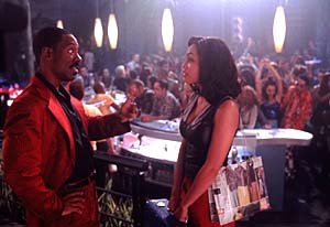 2087年の月世界。何年も前にすべての天然資源が採り尽くされてしまったこのちっぽけな衛星は、21世紀の西部開拓時代といった様相を呈していた。そんなワイルドな世界のなかで、飛びぬけてホットでファンタスティックなクラブのオーナーこそプルート・ナッシュ。かつて星間密輸界のカリスマとして鳴らしたこともある彼だったが、月世界支配を目論む謎のカジノ王レックス・クレイターの誘いを突っぱねたため、執拗に命を狙われるハメに。しかし黙って嘆いているようなプルートではなかった。用心棒ロボットのブルーノと歌手志望のウェイトレス、ディーナを道づれに、ドーム都市リトル・アメリカから青い岩肌むき出しの月面峡谷、そして歓楽都市ルナ・ビーチヘと、想像を絶する冒険の旅を繰り広げていく!もちろんエディ・マーフィの映画だから笑いもたっぷり用意されてはいるものの、基本は西部劇やハードボイルド、そして1940〜50年代に隆盈を迎えたパルプ小説、B級SF映画の香りがいっぱい。それゆえエディの演技も、近作『ナッティ・プロフェッサー』シリーズや『ドクター・ドリトル』シリーズのような“ひたすら爆笑路線”とは一線を引くクールな魅カが大全開になっている。かつてエディをスターダムにのし上げた『48時間』('82)や『ビバリーヒルズ・コップ』('84)、あるいは自身の監督・主演作『ハーレム・ナイト』('89)で見せたような、半分シリアスなカッコ良さで久びさにキメてくれるのだ。やはりエディのワン・アンド・オンリーな魅力はそんなトコロにこそある!ファンにはコレがまず嬉しいところ。